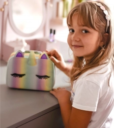 Dieser bunte Koffer mit eingebautem Spiegel eignet sich ideal zur sicheren Aufbewahrung von Kosmetik und Zubehör. Er schützt nicht nur den Inhalt, sondern verleiht jedem Mädchenzimmer auch einen Hauch von Zauber und Verspieltheit.