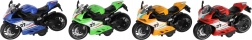 Erhältlich in mehreren attraktiven Farben mit Rennaufklebern sowie detaillierter Verkleidung, Rädern und Auspuff. Dank der kompakten Größe passt es problemlos in die Tasche oder den Rucksack – ideal für zu Hause und unterwegs.