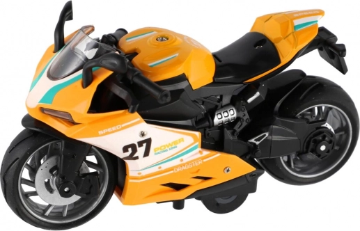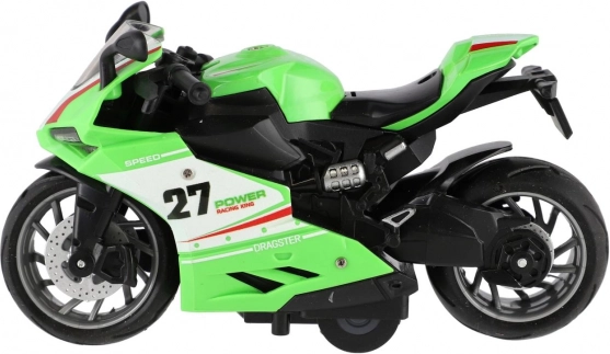 Dieses Plastik-Straßenmotorrad kombiniert ein dynamisches Design mit kinderleichter Bedienung. Einfach nach hinten ziehen und loslassen – das Motorrad fährt schnell los und bietet Kindern actionreichen Spielspaß. Integriertes Licht und Sound sorgen für zusätzliche Realitätsnähe, sodass jede Fahrt wie ein echtes Rennen wirkt.
