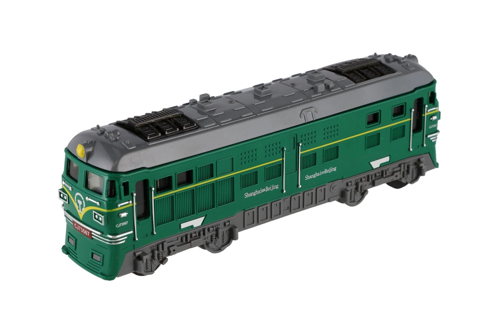 Diese realistische Kunststofflokomotive bietet Spielspaß ohne Umstände – dank Schwungrad fährt sie nach einem sanften Anschub und gleitet ohne Batterien weiter. Die Länge von 18 cm liegt ideal in kleinen Kinderhänden, und die robuste Bauweise hält dem täglichen Spielen stand.