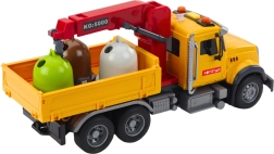 Dieser Müllsortierwagen macht Umweltbildung zum Vergnügen. Kinder können mit dem beweglichen Kranarm Container anheben und absenken, Motor-, Rückfahr- und Hupengeräusche einschalten und blinkende Blaulichter aktivieren – für ein besonders realistisches Erlebnis städtischer Dienste.