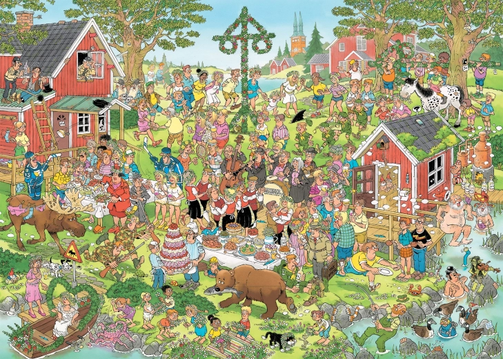 Das beliebte Puzzle aus der Reihe Jan van Haasteren entführt Sie auf ein verrücktes Sommerfestival, auf dem ständig etwas passiert. Der typische Cartoon-Stil voller Figuren, witziger Situationen und einfallsreicher Details sorgt dafür, dass beim Puzzeln keine Langeweile aufkommt. Jedes Teil passt präzise an seinen Platz und enthüllt eine bunte, energiegeladene Szene.