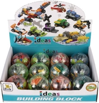 Dieses unterhaltsame Bauset bietet verschiedene Modelle von Verkehrsmitteln, die Kinder selbst zusammensetzen können – so macht nicht nur das Bauen Spaß, sondern auch das Spielen mit den fertigen Modellen. Jede Kugel enthält eine andere Art von Verkehrsmittel, wie Autos, Flugzeuge oder Schiffe.