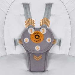 Breiter, ergonomisch geformter Sitz, 5-Punkt-Gurte mit Polsterung und abnehmbarer Spielbogen mit Spielzeugen. Der Bezug kann von Hand bei 30 °C gewaschen werden.
