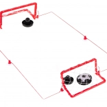 Zwei Tore, Schläger und eine Schnur zur Markierung des Spielfelds verwandeln jeden Tisch in eine Arena für schnelle Airhockey-/Fußball-Duelle.