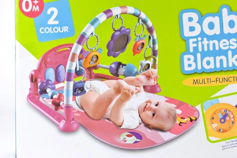 Lern-Spieldecke mit Klavier und Rasseln – rosa