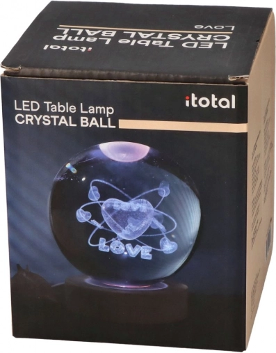 Elegantes Kristall-Lämpchen in Kugelform mit dem Motiv Love und einem Durchmesser von 6 cm. Es sorgt für eine sanfte, atmosphärische Beleuchtung bei 1,5 W Leistungsaufnahme. Ideal als Dekoration fürs Schlafzimmer, Wohnzimmer oder den Schreibtisch. CE-Zertifizierung für einen ruhigen und sicheren Betrieb.