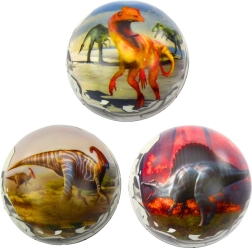 Jeder Ball ist mit auffälligen, farbenfrohen Szenen mit verschiedenen Dinosaurierarten verziert, die zum Spielen einladen und die Vorstellungskraft fördern. Das Design wird zufällig ausgewählt.