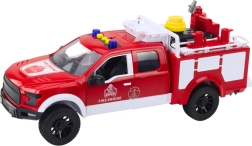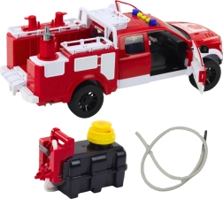 Entdecken Sie ein detailgetreues Feuerwehrfahrzeug im Maßstab 1:12, das robuste Kunststoffausführung mit authentischen Funktionen kombiniert. Kinder erleben echte Action dank Wasservernebelung aus dem abnehmbaren Tank mit Pumpe und flexiblem Schlauch, während Licht- und Soundeffekte die Einsatzatmosphäre unterstützen.