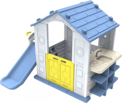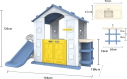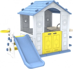 Der Innenraum bietet Kindern reichlich Platz zum Spielen, die öffnenden Türen erleichtern den Zugang und das praktische Spülbecken mit Ablagen unterstützt das Nachspielen einer echten Küche. Breite, verstärkte Stufen und die doppelwandige Rutsche sorgen für einen sicheren Aufstieg und Abfahrt. Ebenfalls enthalten ist ein Basketballkorb mit Ball für Spaß und die Förderung der Motorik.