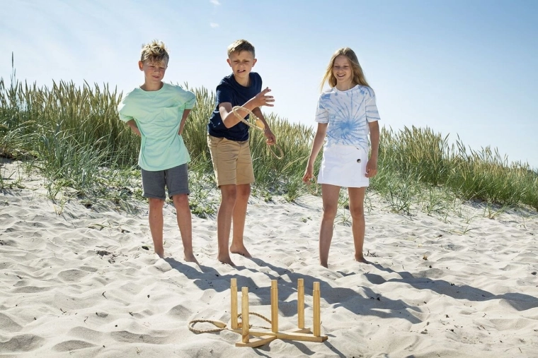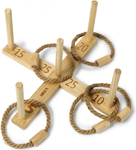 Das Ringwurfspiel RING TOSS FAMILY ist ideal für Outdoor-Spaß und Präzisionstraining. Ringe aus robustem Seil und eine stabile Holzbasis mit nummerierten Stäben gewährleisten faires Punktesammeln und stundenlangen Wettbewerb für Kinder und Erwachsene. Dank der kompakten Maße nehmt ihr es problemlos mit in den Garten, an den Strand oder auf Ausflüge.