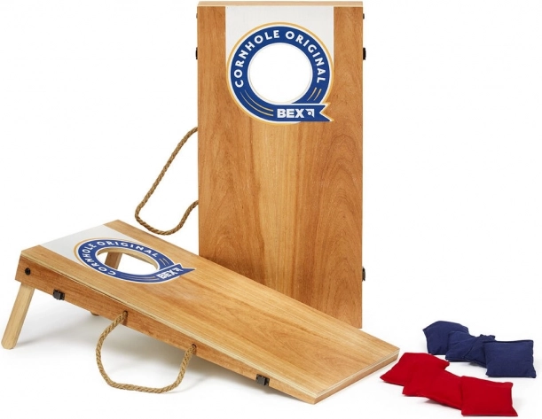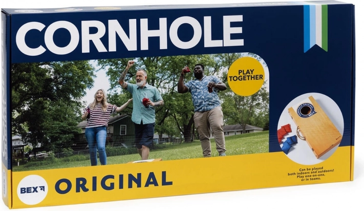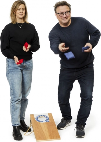 Das Spiel Cornhole ist auch bekannt als 'sack toss' oder 'bags'. Die Spieler werfen abwechselnd, wobei das Ziel darin besteht, den Beutel auf dem Brett zu landen (1 Punkt) oder direkt in das Loch zu werfen (3 Punkte). Das Spiel besteht aus einer Reihe von Runden, in denen jeweils vier Beutel geworfen werden, die eine Farbe haben.