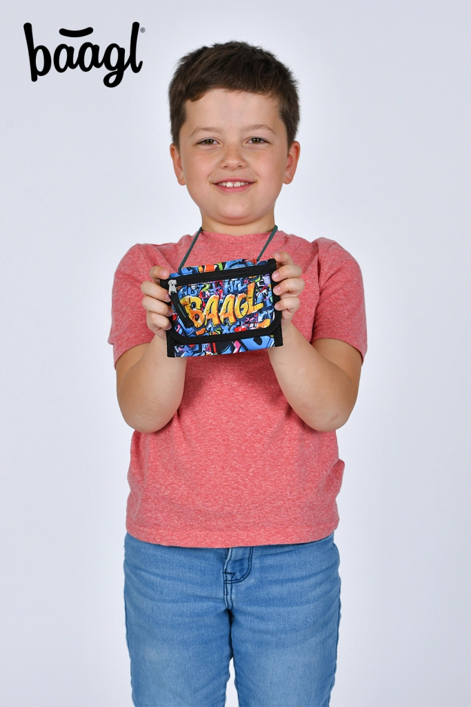 Suchen Sie eine sichere und bequeme Aufbewahrung für Geld und Kleinigkeiten – für Kinder und Teens? Die BAAGL-Halsgeldbörse im Skatepark-Look begeistert mit farbenfrohem Graffiti-Stil und durchdachter Fächeraufteilung. Dank des verstellbaren Trageriemens mit Sicherheitsverschluss lässt sie sich angenehm tragen und bleibt stets in Sicht.