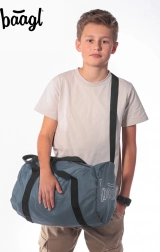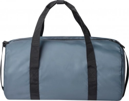 Sporttasche Hoop Dust Blue: Leicht und faltbar mit einer Tragfähigkeit von 5 kg und einem Volumen von 22 l. Ausgestattet mit einem verstellbaren Gurt und einer integrierten Tasche, in die die Tasche leicht verpackt werden kann. Hergestellt aus recyceltem Material und für Reisen anpassbar.