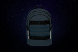 Schulrucksack Skate Dust Blue: Leichtes Modell mit einem Gewicht unter 900 g, verstellbaren Gurten für das Skateboard und anatomisch geformten Rückeneinlagen. Der Rucksack ist mit drei separaten Fächern, einer gepolsterten Laptop- oder Tablet-Tasche bis zu einer Größe von 15 Zoll, reflektierenden Elementen und zuverlässigen YKK-Reißverschlüssen ausgestattet.