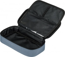 Schul-Federmäppchen Etue Dust Blue: Kompakt mit Reißverschluss, geräumigem Hauptfach, zwei aufklappbaren Flügeltaschen und einer Innentasche. Haltbar dank der Markenreißverschlüsse von YKK, ohne Inhalt.