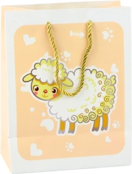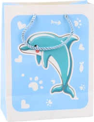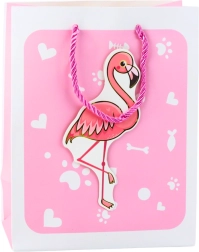 Diese bunte Geschenktasche ist die ideale Lösung zum Verpacken eines Geschenks für ein Kind oder für jeden, der niedliche und märchenhafte Muster liebt. Die Tasche ist aus hochwertigem Papier gefertigt, was ihr Haltbarkeit und ästhetisches Aussehen verleiht. Jede Tasche ist mit fröhlichen dreidimensionalen (3D) Motiven von Tieren wie Flamingo, Delfin, Eisbär und Schaf geschmückt, die von einem bunten Hintergrund mit niedlichen Herzen und Pfoten umgeben sind.