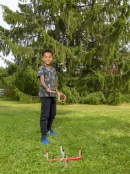 Ringe auf Stifte werfen und Punkte addieren