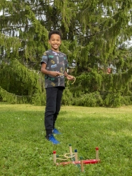 Dank robustem Holz und leichten Ringen ist das Spiel ideal für Kinder und Erwachsene. Es lässt sich leicht transportieren und ist schnell spielbereit auf dem Rasen, im Garten, im Park oder im Urlaub.