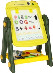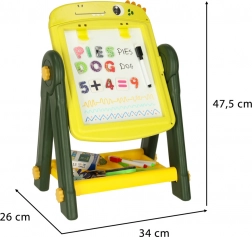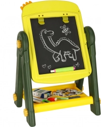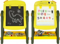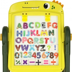 Zweiseitige magnetische Tafel im fröhlichen Dinosaurier-Design ist die perfekte Wahl für kreative Kinder, die gerne spielerisch lernen. Enthalten sind magnetische Buchstaben und Zahlen, farbige Kreiden sowie Marker.