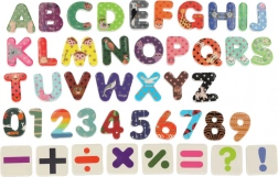 Enthalten sind verschiedene Lernhilfen wie magnetische Buchstaben, Zahlen, Kreiden und Marker.