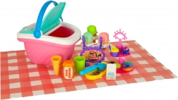 Genießen Sie das perfekte Picknick mit unserem bunten und reich ausgestatteten Picknickkorb voller Desserts und Spielzeuge. Ideal für Kinder und Erwachsene, die süße Erlebnisse beim Picknick lieben.