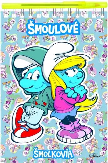 Notizblock Die Schlümpfe mit Stift, Spiralbindung liniert und blanko, 15 × 22 cm