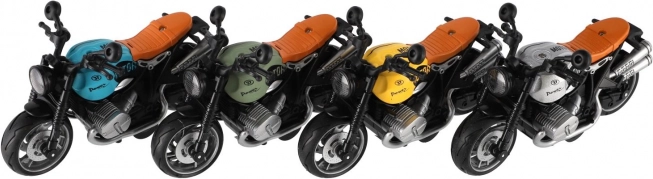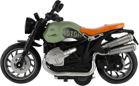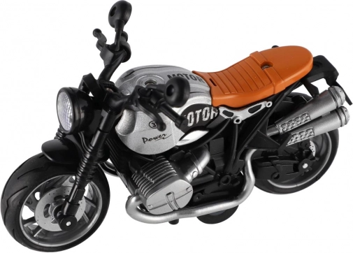 Kompaktes Kunststoff-Motorrad mit 13 cm Länge, mit Rückziehantrieb, Lichteffekten und Sound für ein noch realistischeres Fahrerlebnis. Einfach zurückziehen, loslassen und rasante Action genießen, die Feinmotorik und Koordination fördert. Erhältlich in 4 Farbvarianten.