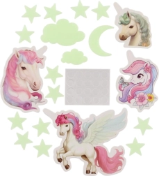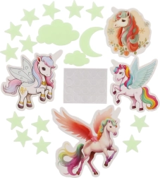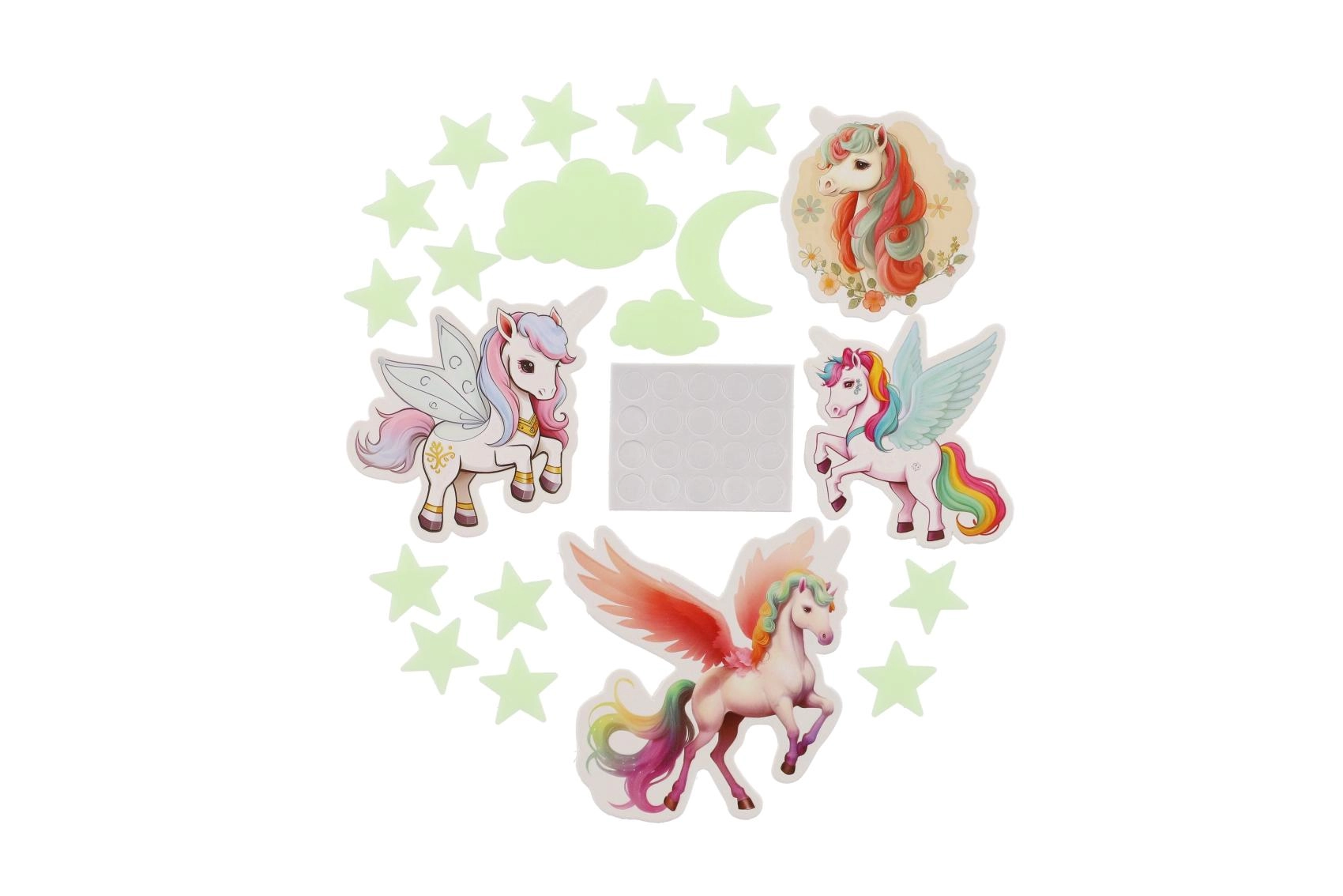 Ein zauberhaftes Set leuchtender Einhörner verwandelt das Kinderzimmer in einen Märchenort. Nach dem Aufladen leuchten sie sanft im Dunkeln, schaffen eine beruhigende Atmosphäre, fördern entspanntes Einschlafen und verleihen dem Raum eine magische Note. Die einfache Anbringung an Wand oder Decke begeistert jedes Kind.