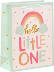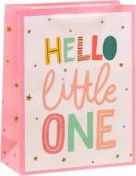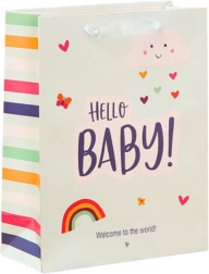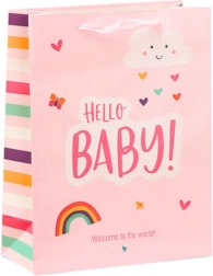 Diese Geschenktasche für Kinder mit pastellfarbenem Design ist ideal zum Verschenken von Geschenken zur Geburt eines Kindes, zur Babyparty oder zum ersten Geburtstag. Verziert mit niedlichen Motiven mit den Aufschriften „Hallo Baby” und „Hallo Kleines”, bringt diese Tasche Freude und Wärme in jeden festlichen Tag.