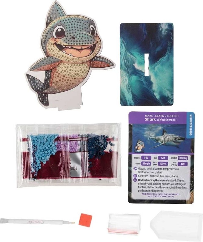 Genießen Sie kreativen Spaß mit der Diamant-Malerei, die für alle Altersgruppen ideal ist. Einfach die kleinen Steine mit dem Stift auftragen und beobachten, wie Ihr beeindruckendes Hai-Bild entsteht.