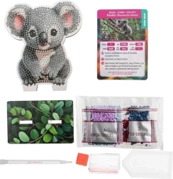 Dieses kreative Hobby erfordert Sorgfalt und Geduld, belohnt Sie aber mit einem schönen Bild, das Sie stolz zur Schau stellen können. Das Paket beinhaltet ein Holzbrett in Form eines Koalas mit vorgedrucktem Bild, einen Holzständer, einen Applikationsstift, eine Schale, klebenden Wachs und ein Set bunter Steinchen.
