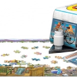 Genießen Sie das Zusammenfügen mit dem einzigartigen Puzzle in der Form eines Wohnwagens in einer Blechdose. Dank der speziellen Form der Teile, die sich von klassischen Puzzle-Formen unterscheidet, wird dieses Puzzle zu einem unvergesslichen Erlebnis.