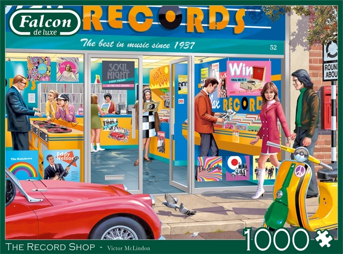 Genießen Sie das Zusammenfügen mit dem FALCON-Puzzle, das 1000 Teile enthält und ein schönes Bild eines Musikladens bildet.