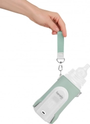 Der Wärmer kann bequem über einen USB-C-Anschluss von einer Steckdose, einer Powerbank oder sogar einem Auto aufgeladen werden. Er verfügt auch über einen Trageriemen für einfaches Transportieren und Befestigen am Griff des Kinderwagens oder an einer Tasche. Eine Sicherheitstaste sorgt dafür, dass der Wärmer nur bei eingeführter Flasche eingeschaltet wird.
