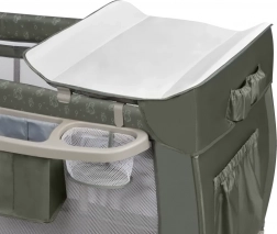 Das Reisebett ist mit einem LockGuard-System ausgestattet, das ein unbeabsichtigtes Zusammenklappen verhindert, und bietet Melodien und ein interaktives Spielzeug, die Ihr Kind unterhalten. Weitere Highlights sind die Matratzenhöhenverstellung in zwei Stufen und ein Wickelaufsatz mit Taschen zur Aufbewahrung von Notwendigkeiten. Zertifizierung durch SGS garantiert geprüfte Qualität.