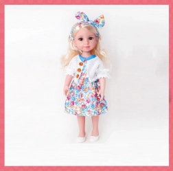 Wir präsentieren eine wunderschöne Puppe, die mit ihren blonden Haaren sofort ins Auge fällt. Diese Puppe hat ein Kleid voller lebendiger Farben mit Blumenmotiv, das die Frische von Frühling und Sommer hervorruft. Sie ist perfekt für Kinderspiele und die Entwicklung der Fantasie.