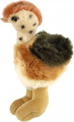 Das Straußenküken besticht mit cremefarbenem Bäuchlein, braunem Körper und dezent gefärbtem Köpfchen – ideal zur Förderung der Fantasie beim Spielen.