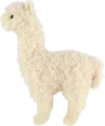 Dieses weiße Plüsch-Alpaka ist wie geschaffen für tägliche Umarmungen. Die weiche, flauschige Oberfläche fühlt sich angenehm an, und die hochwertige Verarbeitung mit auffälligen Augen, Schnäuzchen und Ohren verleiht ihm einen realistischen, freundlichen Ausdruck. Dank der kompakten Höhe von 30 cm liegt es gut im Arm und passt wunderbar als gemütliches Accessoire ins Kinderzimmer.