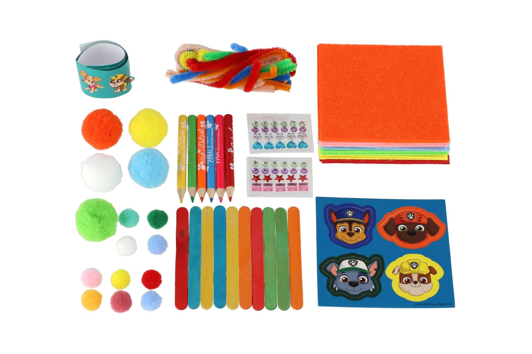 Darin finden Sie eine vielfältige Mischung an Materialien zum Collagieren, Kleben und Zeichnen: weiche Pompons, flauschige Chenille-Drahtstäbchen, Schaumstoff- oder Filzformen, Holzstäbchen, Buntstifte sowie Aufkleber mit beliebten Hundehelden. Ebenfalls enthalten sind Karten und Aktivitäten wie „Entwirf dein eigenes Wappen“, die Kreativität und Fertigkeiten fördern.