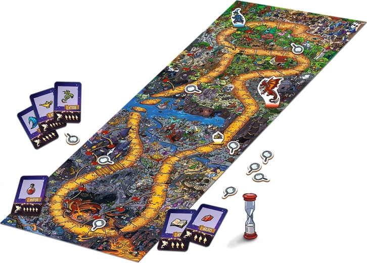 Begib dich mit Spy Guy in eine magische Welt und besiege den Drachen! Spy Guy Fantasy ist ein kooperatives Familienspiel, bei dem scharfe Augen, schnelle Zusammenarbeit und spannende Spurensuche auf dem großen Spielplan entscheiden. Deckt so viele Hinweise wie möglich auf, schnappt euch den Schatz und entkommt dem Drachen, bevor er euch einholt.