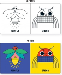 Der magische Wassereffekt verwandelt die Illustrationen von Schwarz-Weiß in bunt und macht jedes Bad zu einem fröhlichen Erlebnis.
