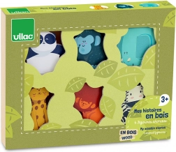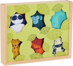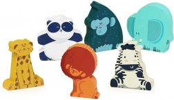 Die Holzfiguren sind robust, ideal für Kinderhände und bieten bildschirmfreien Spaß mit einem Fokus auf eigenständiges Entdecken. Die Figuren werden in einer schönen Holzbox mit Naturmotiven und Aussparungen aufbewahrt, die ein Stück Wildnis direkt ins Kinderzimmer bringen. Das Set beinhaltet: 6 Figuren – Löwe, Panda, Gorilla, Elefant, Zebra und Panther.