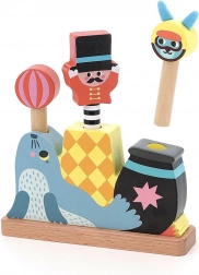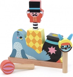Entdecken Sie den Zauber des Holzschleuderspiels mit Illustrationen von Michelle Carlslund im Zirkusstil. Dieses Spiel fördert die Feinmotorik und die Hand-Auge-Koordination und wird umweltfreundlich hergestellt.
