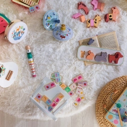 Dieses schön illustrierte Domino von Sarah Betz ist nicht nur unterhaltsam, sondern auch lehrreich. Kinder lernen gleiches Obst und Gemüse zu erkennen und zuzuordnen.