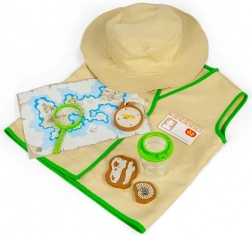 Das Entdecker-Kostüm ist ideal zur Förderung von Fantasie und Kreativität. Es umfasst eine Weste, einen Hut, ein Namensschild, eine detaillierte Karte, eine Lupe, Holzfossilien, einen Kompass und eine spezielle Lupe zur Beobachtung von Insekten, was sowohl viel Spaß als auch lehrreiche Erlebnisse bietet.