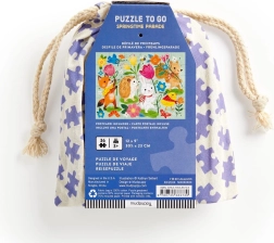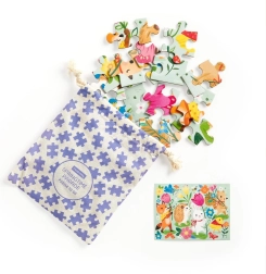 Niedliches Puzzle mit bunten Tierillustrationen in einer Frühlingsparade, enthält 36 Teile, die in einem praktischen 100% Baumwollbeutel für unterwegs verpackt sind.
