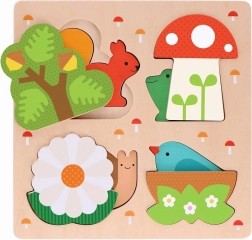 Entdecken Sie den Zauber der Natur mit dem Petit Collage Einlegepuzzle, das Ihre Kinder begeistern wird. Dieses mehrschichtige, achtteilige Puzzle zeigt die Häuser beliebter Tiere wie Frösche, Vögel, Eichhörnchen und Schnecken. Legen Sie jedes Stück ab und finden Sie den richtigen Platz für jedes Tierheim.
