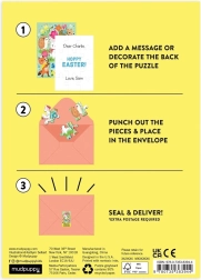 Wir bieten ein einzigartiges 12-teiliges Puzzle im Postkartenformat, das nicht nur Kinder ab drei Jahren begeistern wird. Eine interessante Art, einen Ostergruß zu versenden. Auf der einen Seite können Sie eine schöne Illustration der Frühlingsfeier genießen und auf der anderen Seite haben Sie Platz für einen persönlichen Ostergruß.