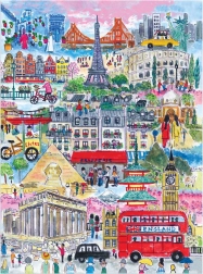 Genießen Sie eine Reise rund um die Welt mit der eindrucksvollen Illustration von M. Storrings, die das Treiben der Straßen und die berühmten Wahrzeichen beliebter Destinationen einfängt. Dank des präzisen Stanzschnitts fügen sich die Teile nahtlos zusammen, und das fertige Motiv mit den Maßen 68,6 × 50,8 cm wird zur eleganten Dekoration Ihres Interieurs.
